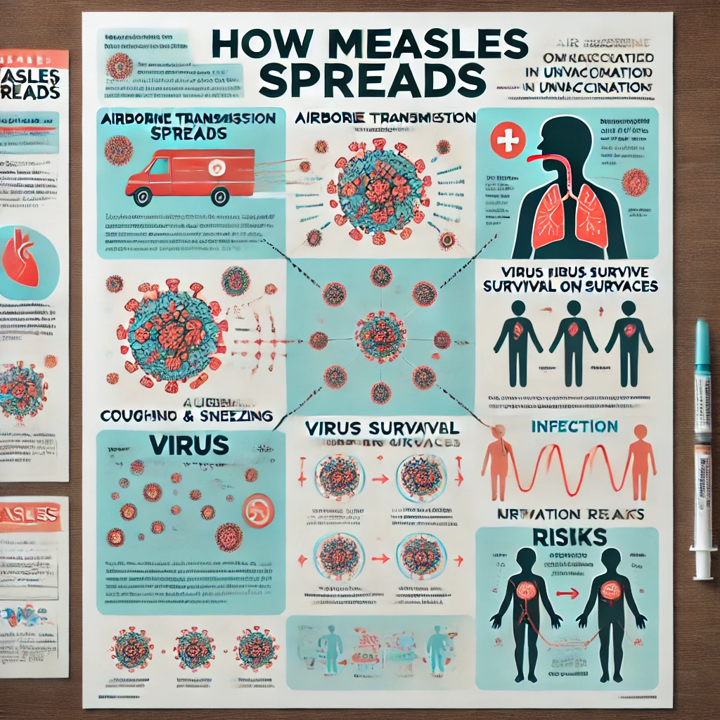 홍역은 홍역 바이러스로 인해 발생하는 급성 전염병으로, 기침과 재채기 등의 비말을 통해 공기 중으로 쉽게 전파된다. 전염성이 매우 강해 면역이 없는 사람이 감염자와 접촉할 경우 90% 이상이 감염될 수 있다.